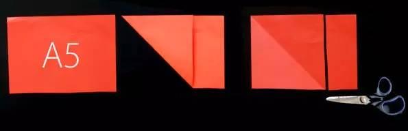 1.將A5紙按照下圖的折法,折出屋頂與小煙囪