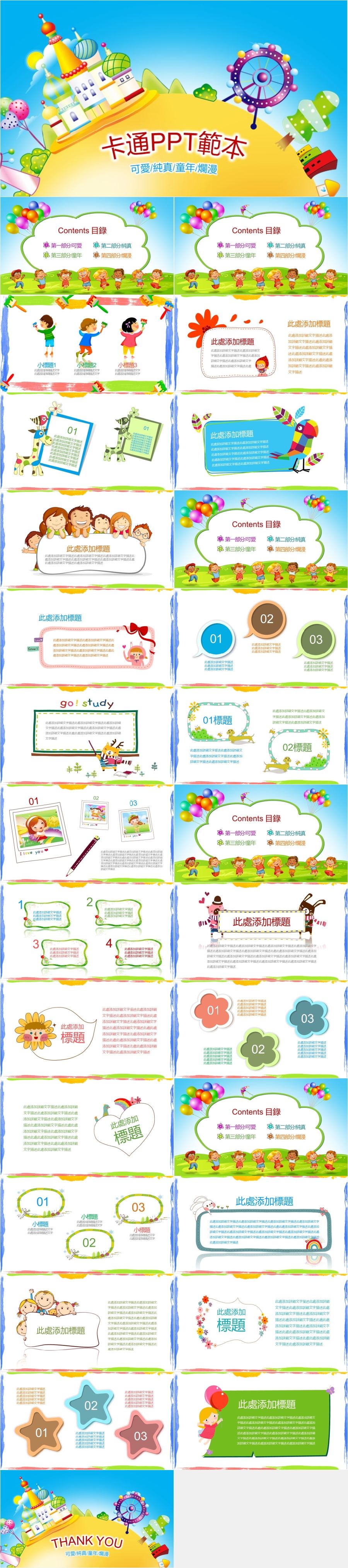 > 幼兒園卡通PPT模板可愛-純真-童年-爛漫