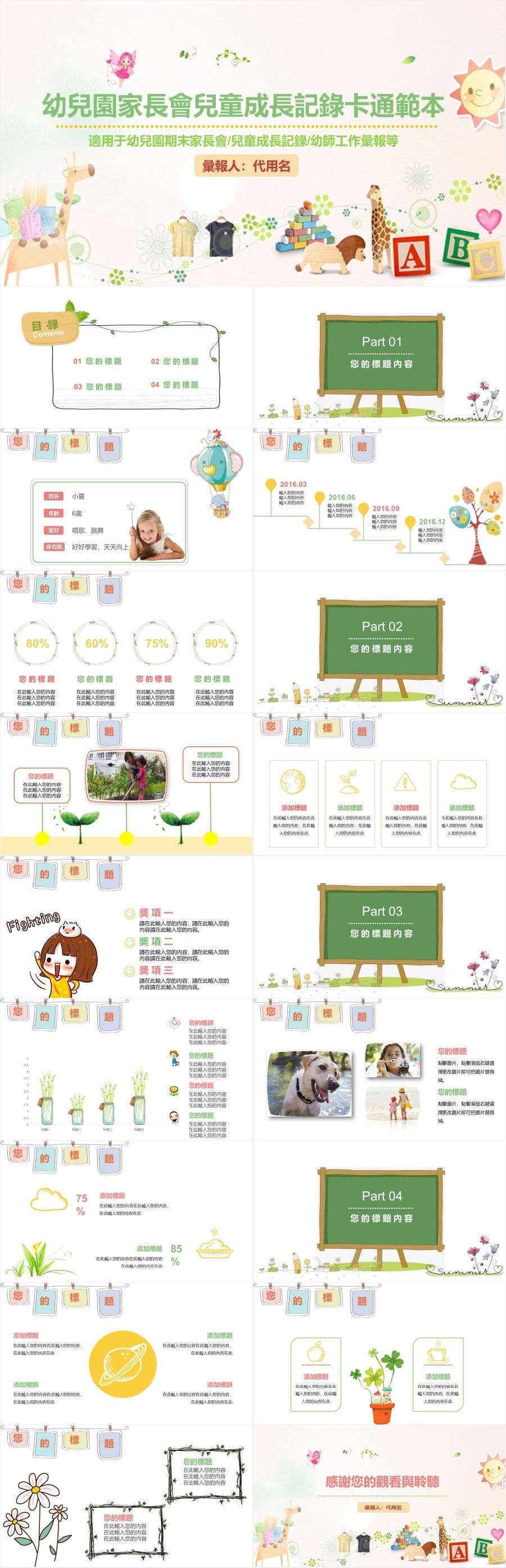 > 幼兒園家長會兒童成長記錄卡通範本