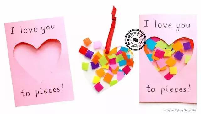 3.打卡贺卡,把上面准备好的爱心粘贴在贺卡的内部,写上文字就完成啦~