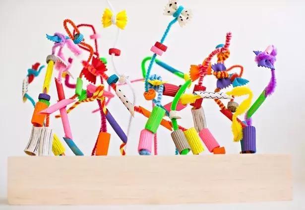 可以把冰棒條理解為扁條形的積木單元,可以用黏土來做粘合劑,更好玩一點的就是夾子~