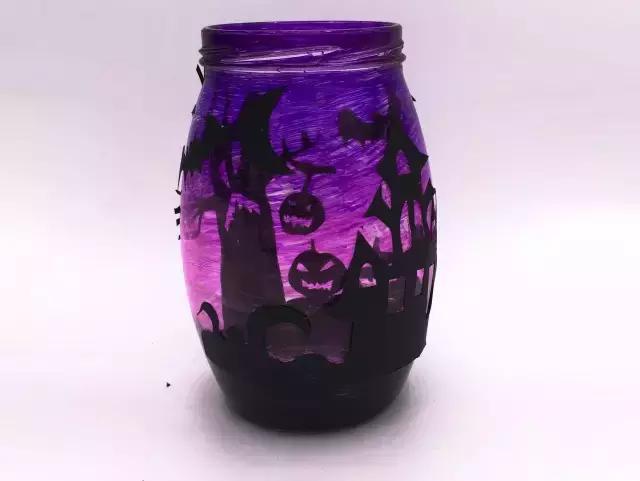所需材料:玻璃瓶、粉紫色油性筆、黑色紙、膠水、鉛筆、剪刀。