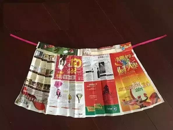 1、取一張報紙,沿著斜邊折出百褶裙的褶皺邊,想要裙子大些就多粘貼幾張報紙進行摺疊。