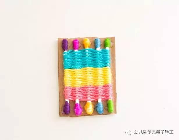 1.讓棉簽兩端的棉花上先粘上顏料,待干後,用膠水固定在紙皮上,就可以開始編織了