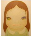 年在青森出生的奈良美智,早期以插畫為主要表現方式,作品以大量無透視感的插畫背景來凸顯人物的神情。奈良美智的筆下人物以大眼睛、大頭的形象聞名,搭配各種捉摸不定的眼神:無論是斜視的眼神、緊閉雙眼的神態、或以星空般璀璨大眼直視觀者,眼神傳遞出難以言盡的情感,任由觀者兀自投射,令人猜不透這些萌樣外表的個性小娃兒,到底在想些甚麼。