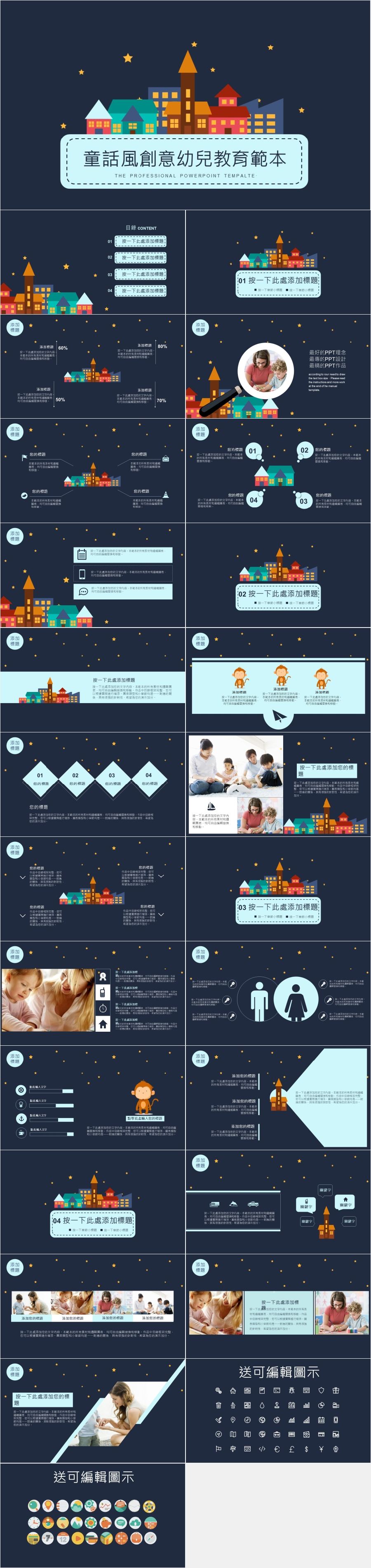 黑板報風格卡通兒童幼兒園教育PPT範本