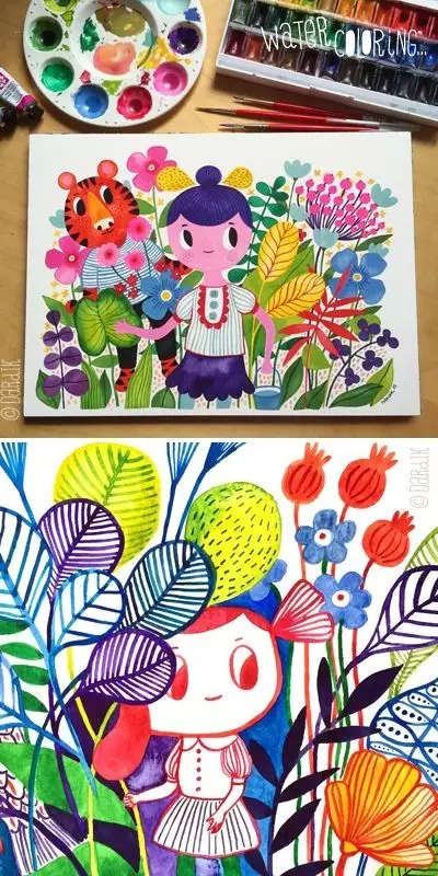 4.用水粉顏料,或者用蠟筆,填充一些顏色
