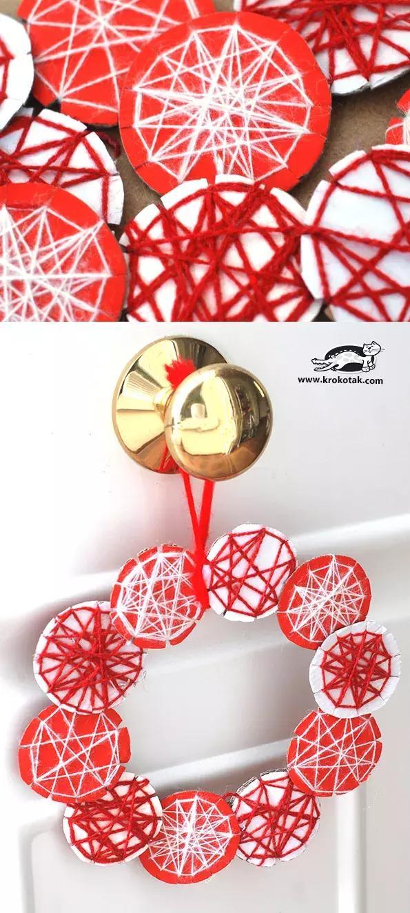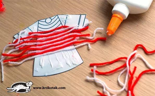 您只需準備:紅白毛線,膠水,剪刀,捲紙筒 ,即可完成。