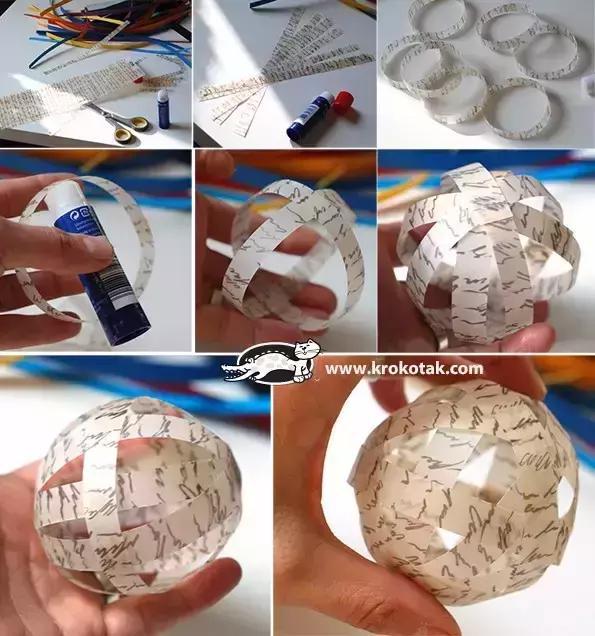 1.把卡紙剪成條狀,用固體膠把兩端粘起來,做成圓形,然後將多個圓形交叉粘在一起。