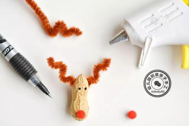 10.麋鹿是最簡單的,用扭扭棒做兩個鹿角,畫上眼睛,黏上紅色小毛球就算搞定啦!