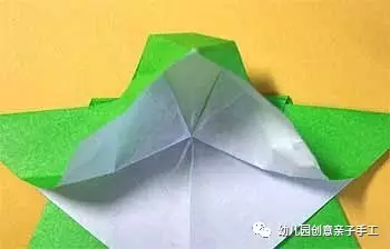 9.沿著三條綠線折出三條摺痕,然後拉折起來。