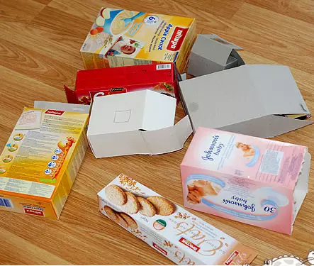 【準備材料】:各種紙盒、畫筆、剪刀、膠水。