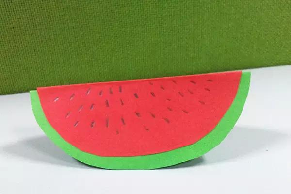 同前面的綠色卡紙的折法一樣,折成一塊西瓜的形狀。