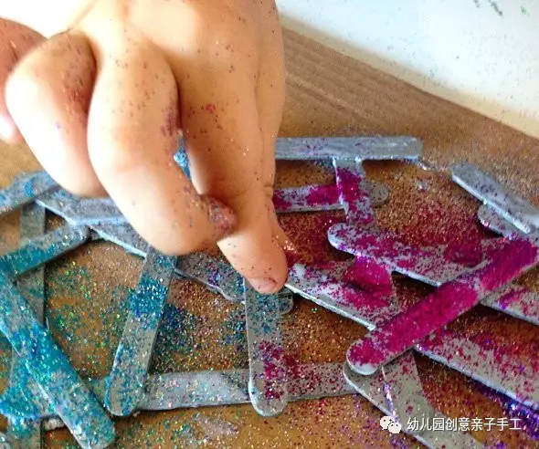 1.把各種冰棒棒擺出好看的形狀,再粘貼好就完成了一半。