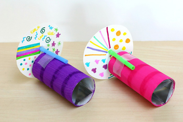 1.捲紙筒、白卡紙、聚酯薄膜、吸管、彩色筆、顏料