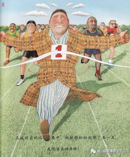 如:鋼絲、賽跑、吃飯、舉重、游泳等圖片,引導幼兒用繪本的語言描述畫面的內容。