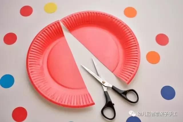 1.將紙盤對摺,剪去尖角的一小部分,摳去眼睛部分