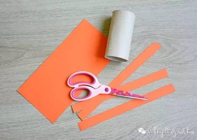1.準備兩個捲紙筒,尋找各種顏色的海綿紙,並將其剪成長條狀