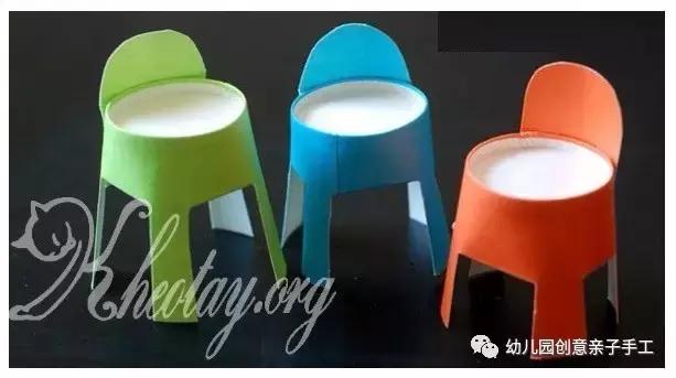 按照圖片的步驟流程,將紙杯剪成其中一個椅子的形狀