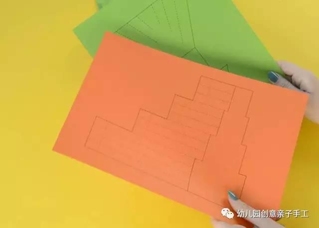 1.如圖,在橙色卡紙上畫出多個小長方形搭建的「階梯」