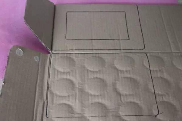 5.在紙板上畫上三個相框的正面與背板。