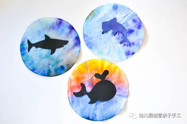 3.把剪好的小魚粘貼在濾紙上,作品就完成了