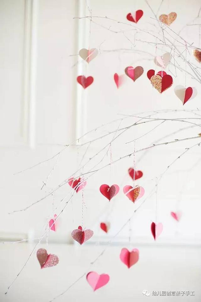 2.剪很多愛心,把它們懸掛在樹枝上。