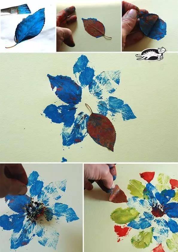 將樹葉塗上顏料