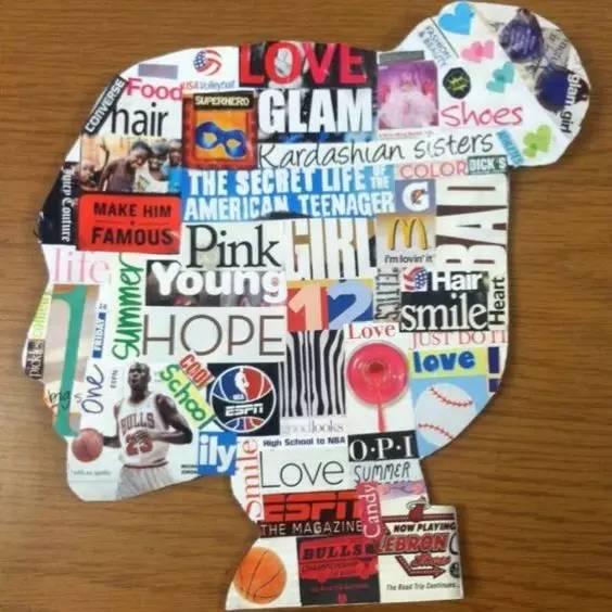 先畫好圖形,將舊雜誌剪好粘貼即可