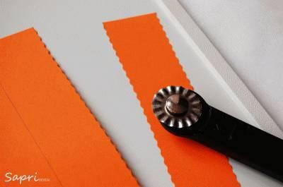 1.首先取兩張卡紙,用軸旋轉切片切出兩條橙色的卡片(注意安全哦),再用剪刀剪出三條綠色卡片(兩短一長)