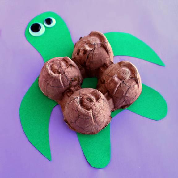 1.根據四個雞蛋托的大小在卡紙上畫出小烏龜的身體