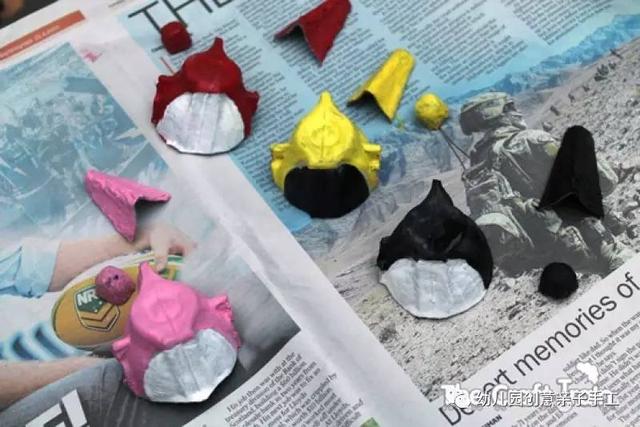 【所需材料】雞蛋托、膠槍、棉花、顏料